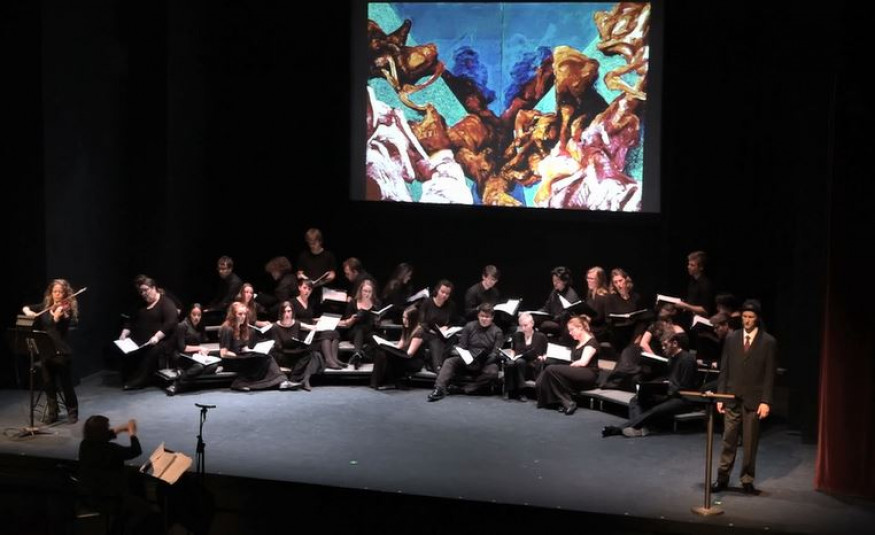 Performance of Samuel Rubinstein's arrangement of Hatikvo as part of Jac Weinstein's tableau Mother Rachel in Madison, Wisconsin,  2016.